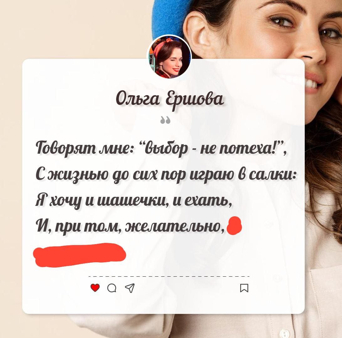 #вопрос : Закончите стих Ольги Ершовой двумя словами